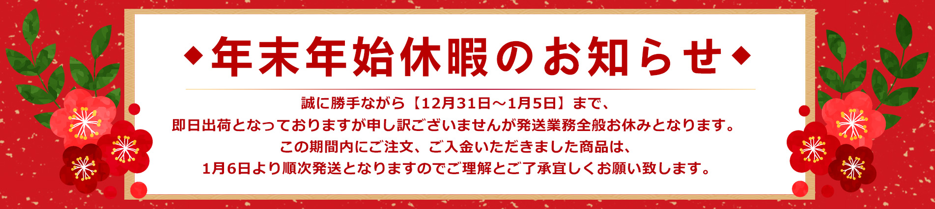 12/31~1/5まで誠に勝手ながら正月休みとさせていただきます!