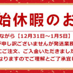 2025年12月29日 / 最終更新日 : 2025年12月29日 ll2 お店情報 2025年 タイヤショップツーエル 年末休みのお知らせ 12/31~1/5まで誠に勝手ながら正月休みとさせていただきます! その間の発送業務もお休みとなります🙏 12/30は17時までの短縮営業となりますので予めご了承ください。(最終受付は16時~16時30分となります) で […]